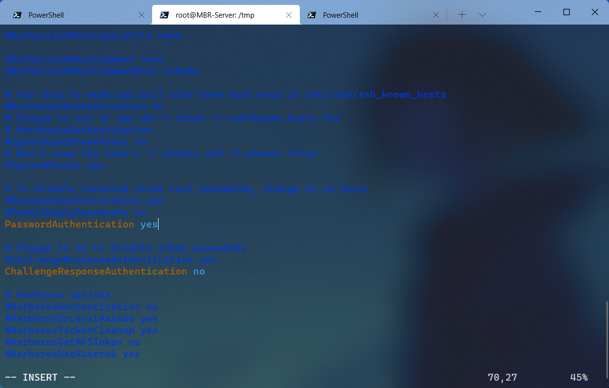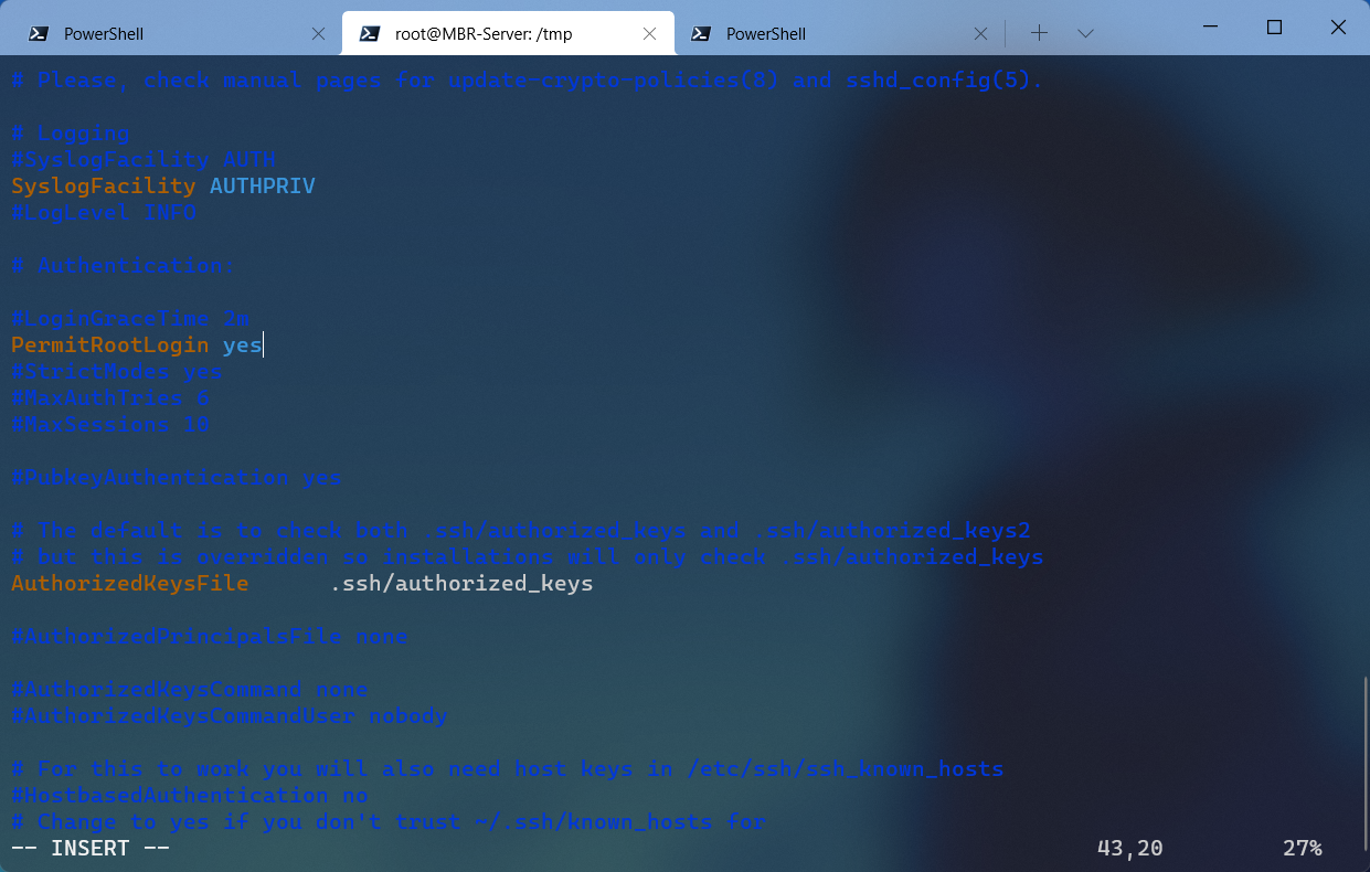 1 2 [ESC]:wq[Enter] systemctl restart sshd