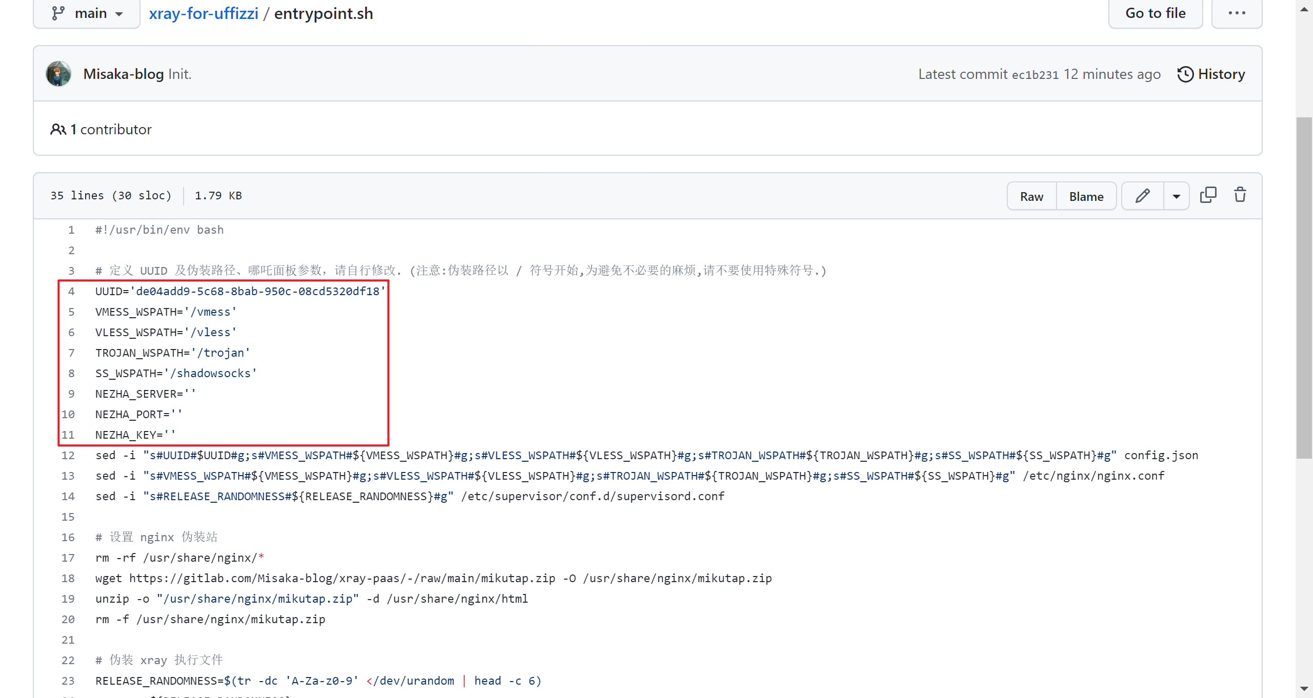 4.在 entryport.sh 的 4-11 行修改项目变量