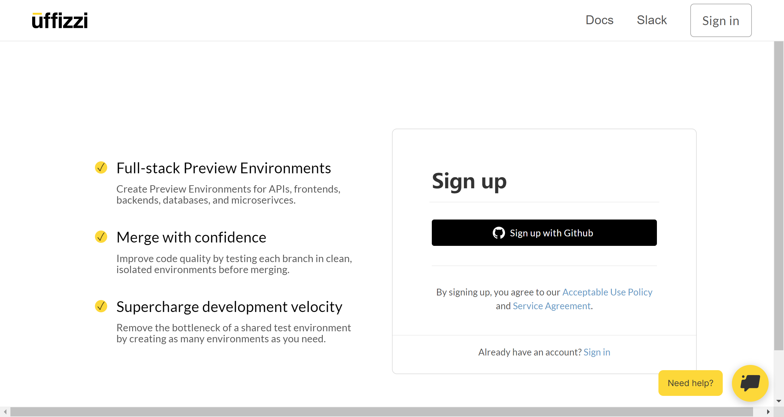 5.打开Uffizzi官网:https://www.uffizzi.com ,点击“Sign up”注册