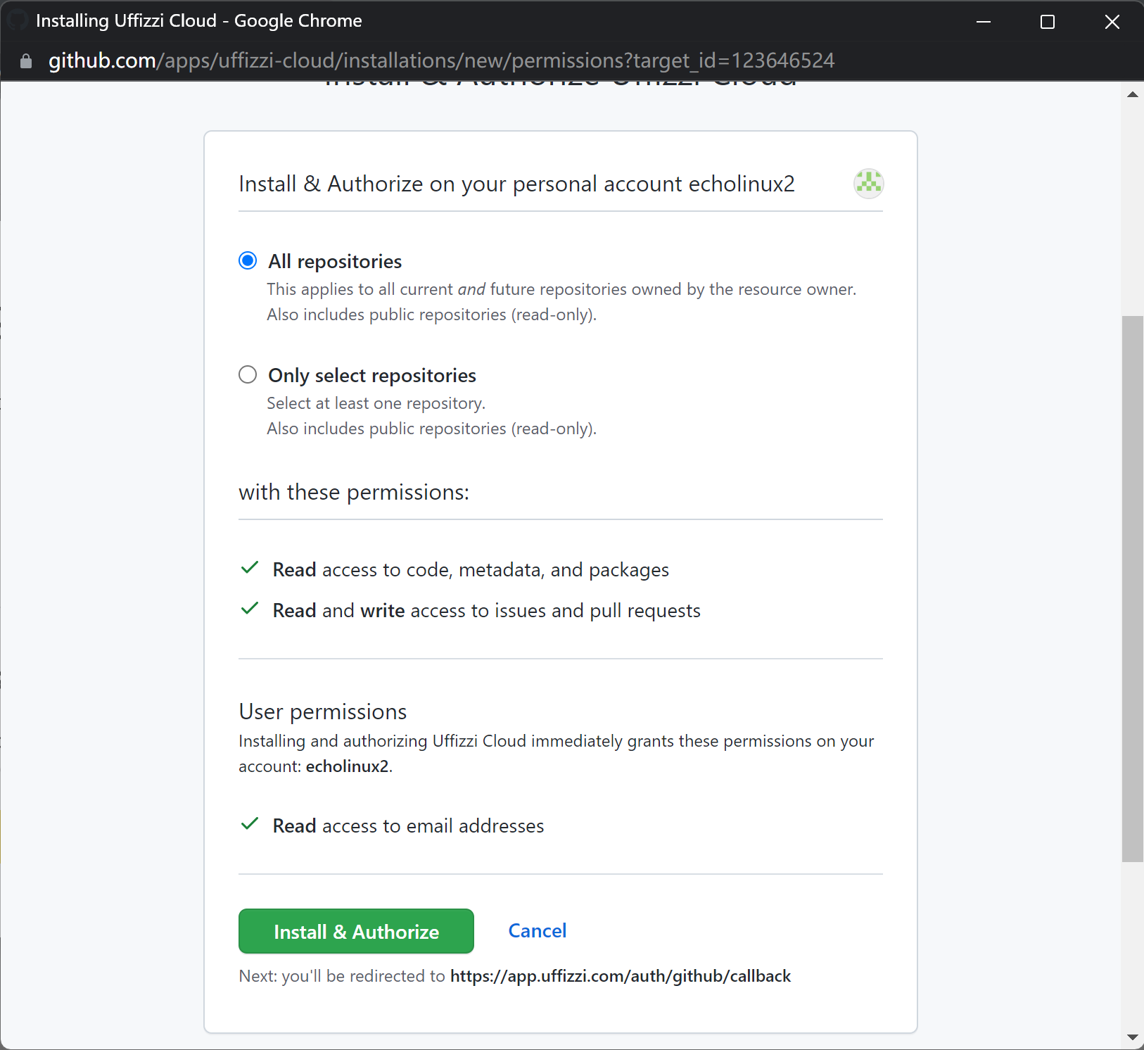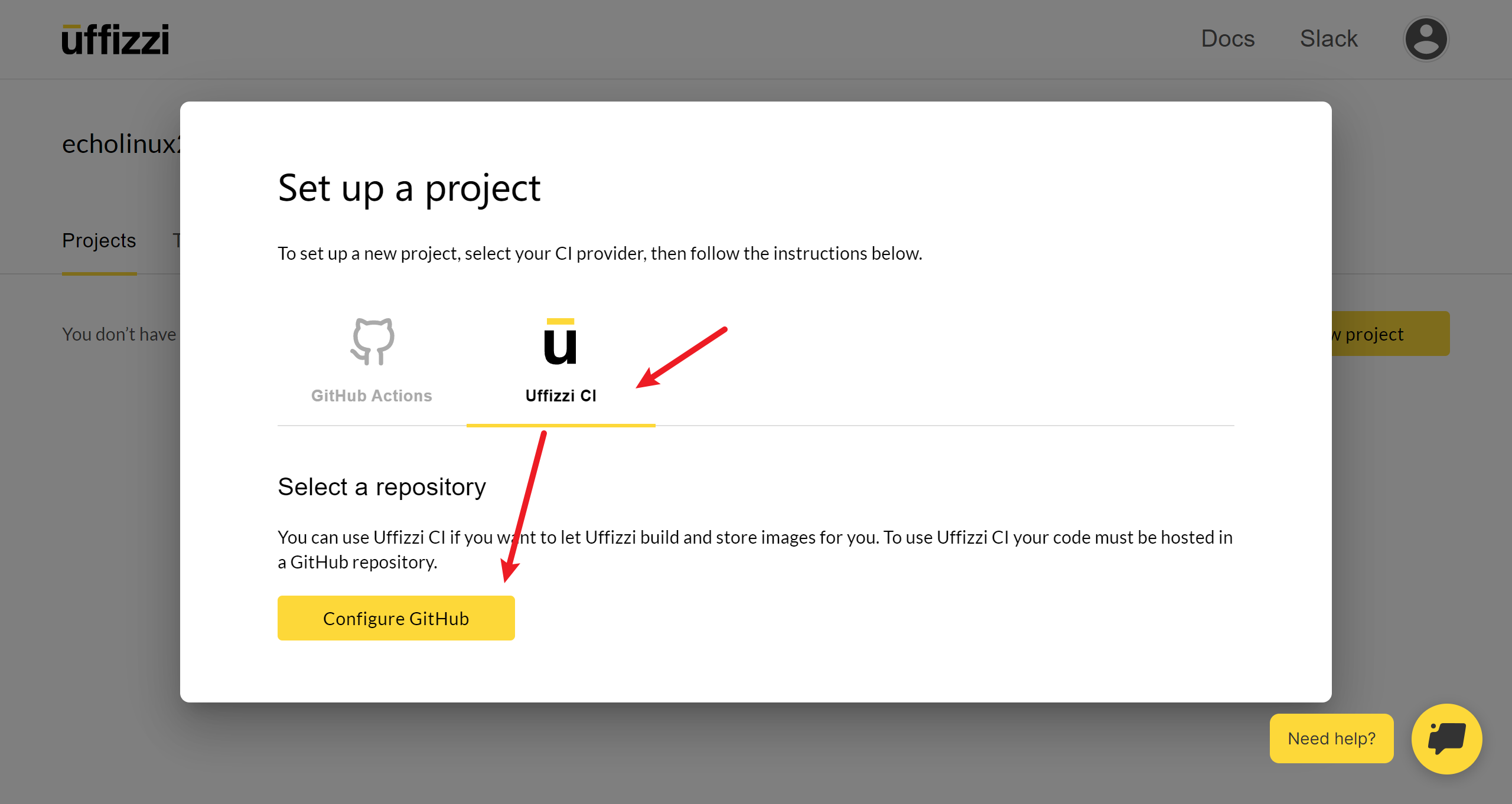 7.点击“Uffizzi CI”,再点击“Configure GitHub”