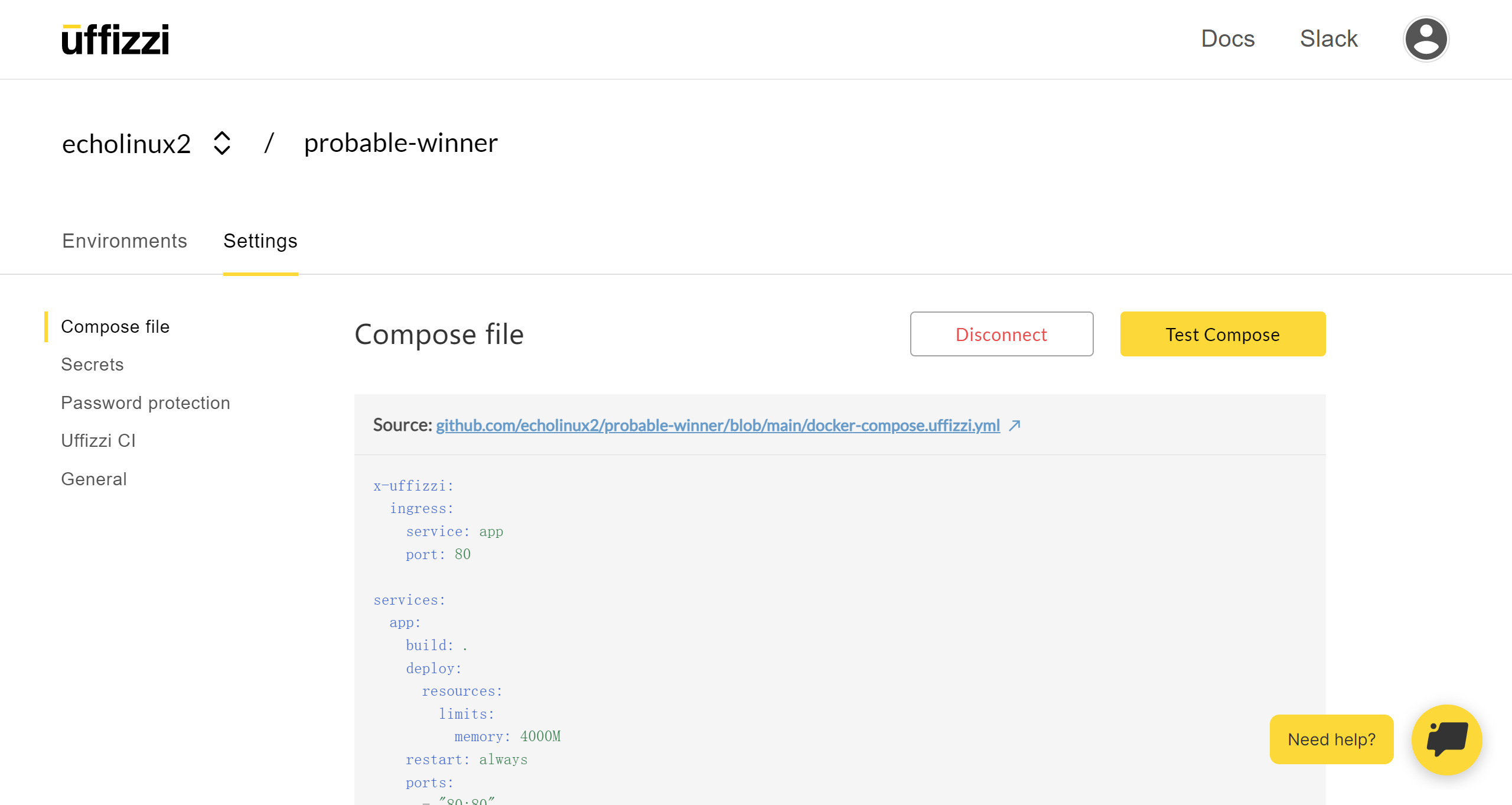 10.按照下图配置,compose文件名称为docker-compose.uffizzi.yml,然后保存