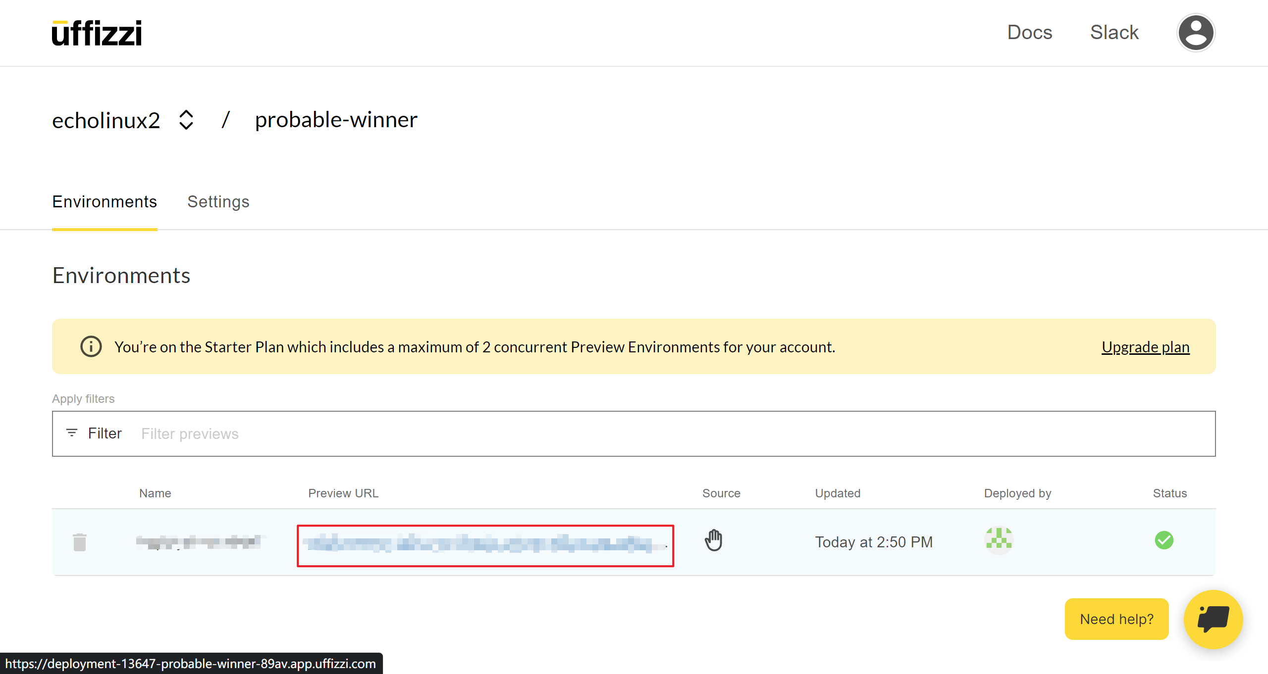 12.耐心等待3-5分钟,待下方的Status打勾的时候,即为成功。复制Preview URL备用