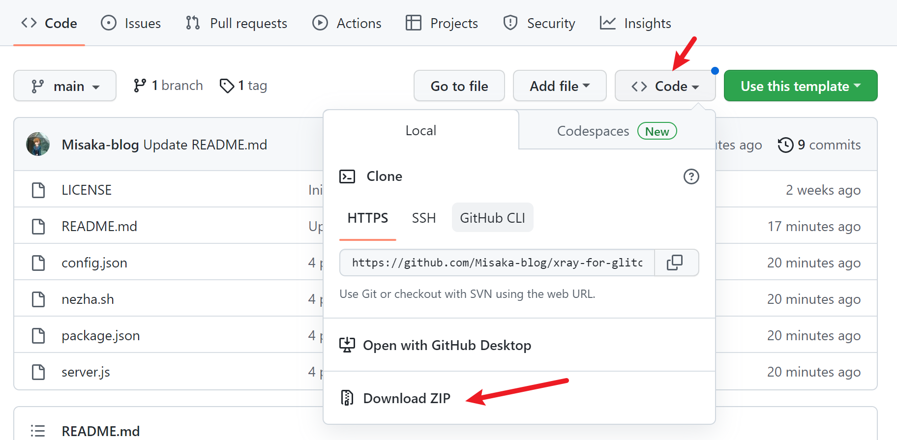 1.打开项目地址:https://github.com/Misaka-blog/xray-for-glitch